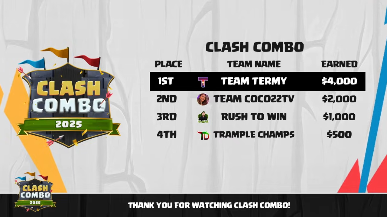 Team Termy rose above the competition to claim the Clash Combo crown and the biggest share of the $7,500 prize pool. With Termynater leading the way, the team combined the experience of seasoned pros with the hunger of standout Town Hall Cup winners. Together, they delivered thrilling attacks and clutch defenses that carried them to victory in a Grand Finals Reset.